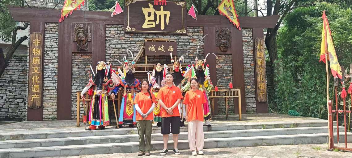 7 月 7 日,实践团队前往安顺市平坝区天龙屯堡。这座由明代汉族移民建立的村落,完整保留了明代汉族移民与当地少数民族文化共生的独特样本。队员们发现,屯堡文化呈现出鲜明的交融特征,建筑既保留江南木雕的精致,又融入当地少数民族的石头工艺;居民身着的凤阳汉服上,点缀着苗族银饰的纹样;国家级非物质文化遗产屯堡地戏,在表演内容与形式上吸收了布依族傩戏的元素。此外,团队还深入平坝区乡村,走访多民族聚居村寨,看到汉族村民与苗族、布依族同胞共同经营的民宿、餐馆生意红火,直观感受到民族团结对经济社会发展的推动作用。