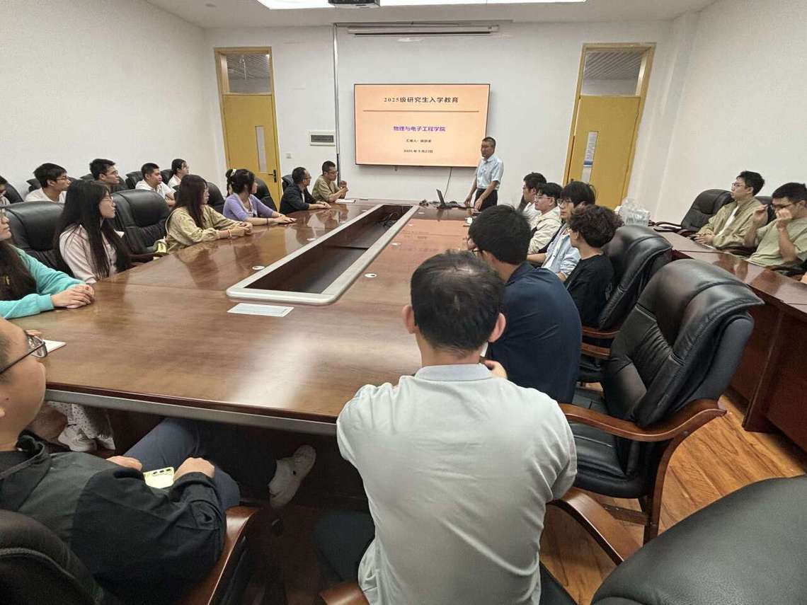 金秋九月,硕果盈枝,我院迎来了一批朝气蓬勃、怀揣梦想的研究生新生30名。为帮助他们更好地适应校园生活、实现角色转变,物电学院院长杨剑波、副院长刘永春为他们讲授了入学教育课,助力新起点的扬帆启航。