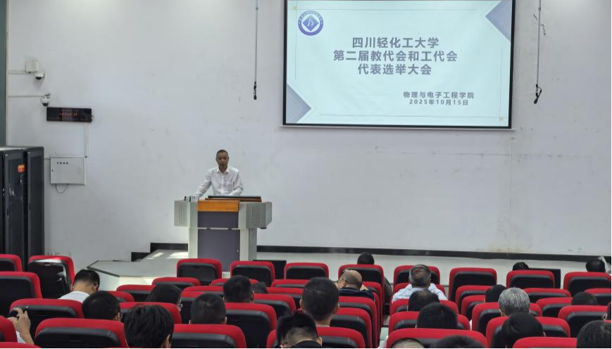 10月15日,四川轻化工大学第二届教职工代表大会暨工会会员代表大会(以下简称“两代会”)第一次会议物理与电子工程学院代表选举大会在宜宾校区A5-104会议室隆重举行。本次会议严格按照《基层工会会员代表大会条例》《四川轻化工大学教职工代表大会实施细则》及学校工会相关规定,以无记名投票、差额选举的方式,民主选举产生杨剑波、袁玉全、白星、魏世平、庞尚珍、陈顺玲六位同志为物电学院参加学校第二届“两代会”第一次会议的代表。