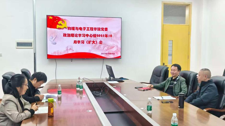 10月28日,物电学院党委理论学习中心组在宜宾校区A5-414会议室召开学习(扩大)会。学院党委副书记晋良平主持会议,理论学习中心组成员、处科级干部和系(副)主任参加了学习。