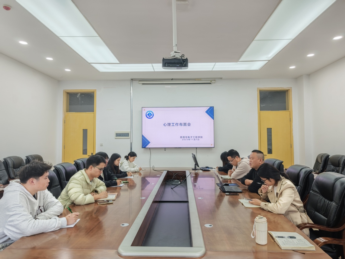 11月7日13:00,物理与电子工程学院于A5-414会议室召开心理工作布置会,学工办主任何强、团委副书记安晓军、樊小灵、石明星老师、本科学生会主席团和研究生学生会代表参与了本次会议。