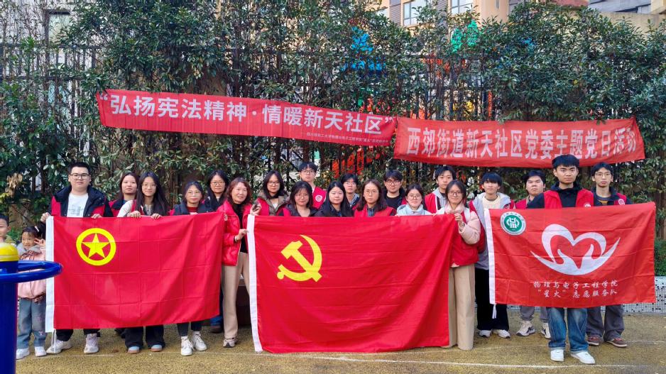 为深入学习宣传宪法精神,提升社区居民法治意识与维权能力。12月4日,物理与电子工程学院携手新天社区共同举办了“弘扬宪法精神 情暖新天社区”主题普法宣传活动。活动依托“党建带团建”工作机制,在学院党委、团委与新天社区共同协调保障下,二十名党员、团员志愿者、近百名社区居民积极参与。