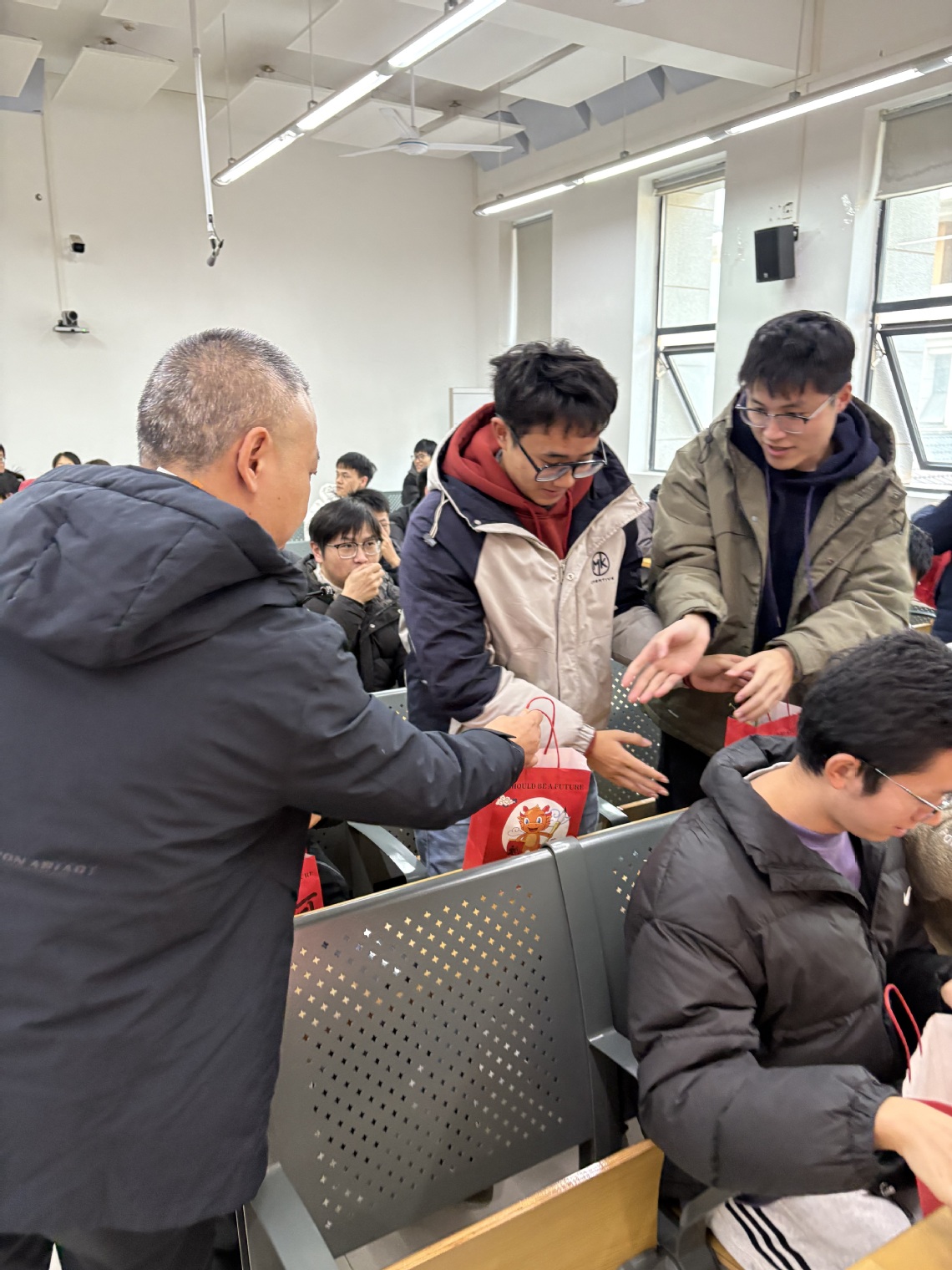 为了给考研学子加油鼓劲,学院精心准备了寓意吉祥的慰问礼包。每一个苹果都寄托着苹安顺遂的美好祝愿,每一颗桔子都蕴含着橙风破浪的殷切期盼。学院领导和老师们亲手将礼物送到每位同学手中,叮嘱大家注意劳逸结合,保持良好心态。