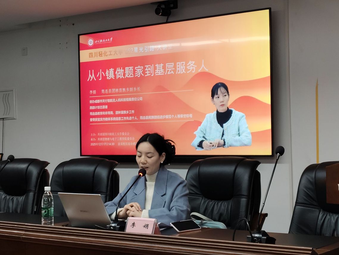 12月17日14:30,筠连县团林苗族乡副乡长李娟应邀莅我校宜宾校区,在综合楼E1-323教室开展题为“从小镇做题家到基层服务人”的专题讲座。本次讲座吸引近百名师生到场聆听。