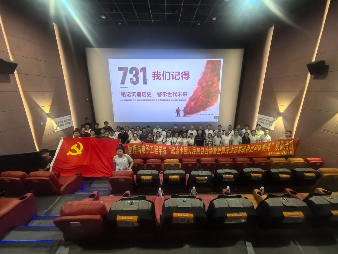 为纪念中国人民抗日战争暨世界反法西斯战争胜利80周年,深入贯彻落实爱国主义教育精神,9月24日,物理与电子工程学院党委、分工会组织教职工和学生党员代表在宜宾市公园π电影院开展主题观影活动,集体观看历史题材影片《731》。