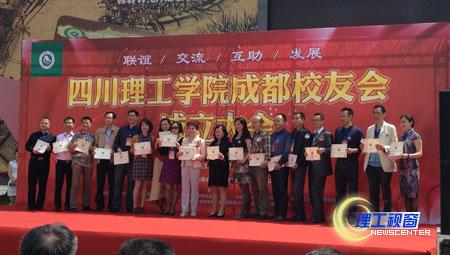 副院长王成端教授宣读了母校对四川理工学院成都校友会成立的贺信,副院长龚敏教授代表母校向四川理工学院成都校友会授牌。