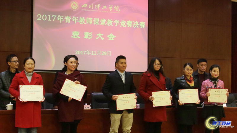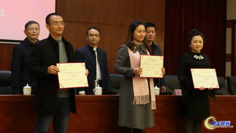 下午五点半,2017年青年教师教学课堂竞赛决赛表彰大会在学术报告厅举行。校党委书记王洪辉、副校长肖兴政、校工会常务副主席杜鑫、教务处处长黎克麟、人事处处长封雪松、竞赛评委、各二级学院领队、全体参赛人员和教师教学能力培训班全体成员参加了表彰大会。副校长肖兴政宣布了本次决赛的获奖名单:王小梅、张翼、吴浩获得了一等奖,汪芳、龚雪、李玉龙、庞尚珍、孙亚丽、李瑞桢获得了二等奖,陈肖琳、杨皓、邵景霞、苏越斌、杨静、郑兴文、万珊、李轩、程纯儒获得了三等奖;化学与环境工程学院、外语学院、物理与电子工程学院、音乐学院获得优秀组织奖。