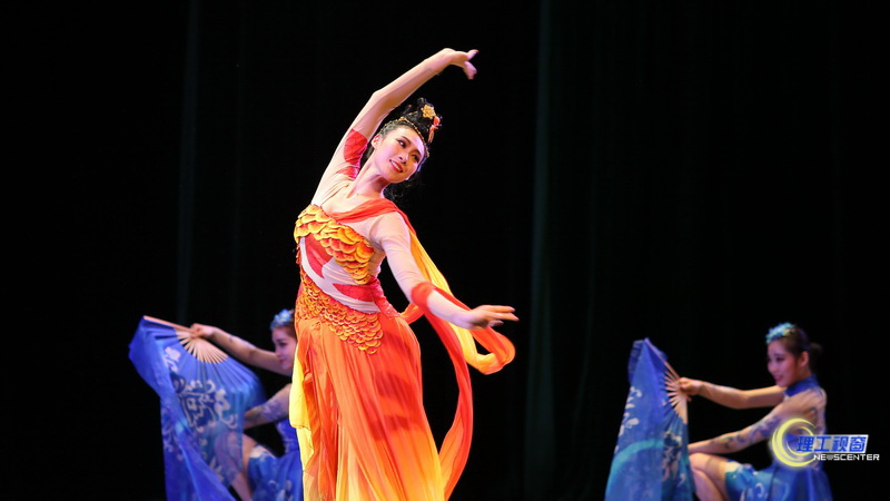 本次“高雅艺术进校园”四川理工学院专场演出由中央歌舞艺术团精心编排,融汇不同民族的优秀音乐舞蹈作品,高超的技艺,精美的民族服饰,美轮美奂的舞台动画背景,为川理师生呈现了一场精彩的视听盛宴。欢乐热烈的舞蹈《鱼跃龙门步步高》拉开了整场演出的帷幕。轻快的音乐,曼妙的舞姿,让台下观众领略到少数名族的异域风情。随后表演艺术家张铎带来了一曲马头琴独奏《查尔达斯》,气势雄浑、奔放激昂的演奏赢得台下观众的阵阵掌声。独唱《山里的火塘》让场内的气氛迅速升温,少数名族艺术家陶建阿成用他独特的嗓音、雄浑有力的歌声和如火般的热情掀起现场首轮高潮。整场演出精彩不断,歌舞团成员带来的舞蹈《打歌打舞》,让观众们感受到少数民族青年男女的灵动与活力;女歌唱家沈利的独唱《望月,芦花》和《阳光路上》,歌声悠扬婉转,引人入胜;来自维吾尔族的艺术家努尔艾力用欢快的热瓦普独奏《欢乐的春天》点燃全场,带来别样的视听盛宴;舞蹈《骏马》更是表现出蒙古族豪气不羁的男子气概;二月半组合演唱的《悟空》和《太阳出来喜洋洋》将气氛再次带入高潮,他们激情十足的歌声将观众们的心情点燃,全场呼声不断。舞蹈《山谷回响》,演员们用灵巧的舞步,带给观众动与静的美感。来自我校合唱团的深情合唱《千年盐源》,通过歌声向观众传递出古朴厚重的盐文化。女歌唱家朱韬的《我爱你中华》、歌唱家蓝剑的《中华一家亲》和《共产党人》,每一首歌曲都深深地感染着在场观众,赢得现场如雷掌声。 最后一群年轻阳光、充满朝气的青年舞者给大家带来舞蹈串烧《青春之歌》,他们跳动的舞步,展现出当代青年的青春激情与活力。伴随着全场观众经久不息的掌声,本次演出顺利落下帷幕。