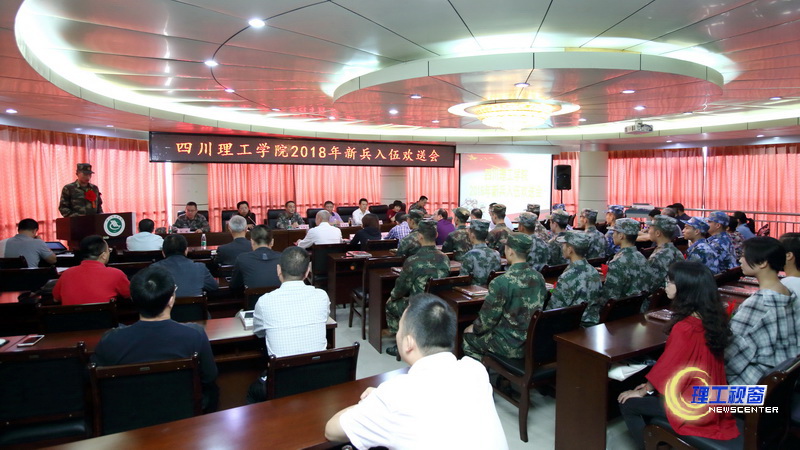 9月12日下午,我校在汇东校区综合楼第5会议室举行了2018年新兵入伍欢送会。学校党委书记王洪辉、校长庹先国、党委副书记龚敏,自贡军分区领导、自流井区人民武装部领导、学校武装部、学生处、招就处等有关职能部门及相关二级学院负责人参加了欢送会。会议由副校长高小林主持。