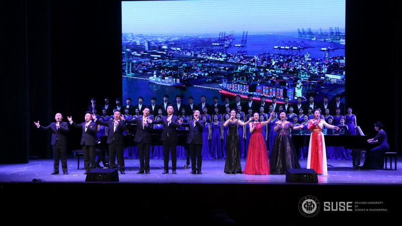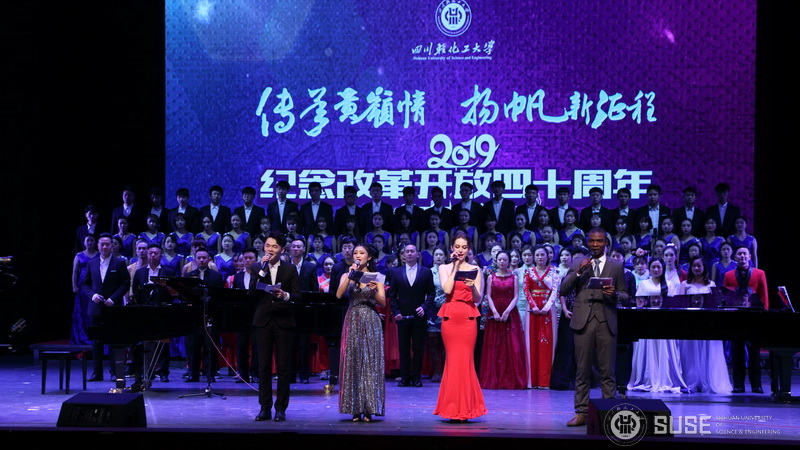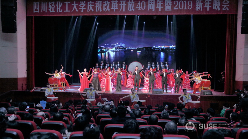 12月26日晚,我校自贡校区科学会堂人声鼎沸,“传承黄岭情,扬帆新征程” 四川轻化工大学纪念改革开放四十周年暨庆祝升大更名成功2019年新年晚会正在这里举行。学校党政领导王洪辉、庹先国、龚敏、聂军、刘康、肖兴政、颜杰以及各职能部门负责人和近千名师生代表共同观赏了一台高质量的综合性节目晚会,这是我校更名为四川轻化工大学后举办的第一届迎新晚会。