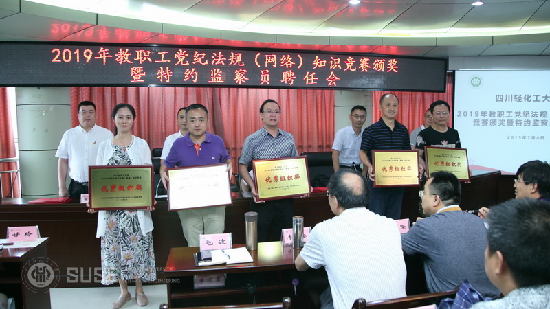 组织部部长宋弘宣读了2019年教职工党纪法规(网络)知识竞赛获奖组织及个人名单,领导嘉宾为获奖单位及个人进行了颁奖。