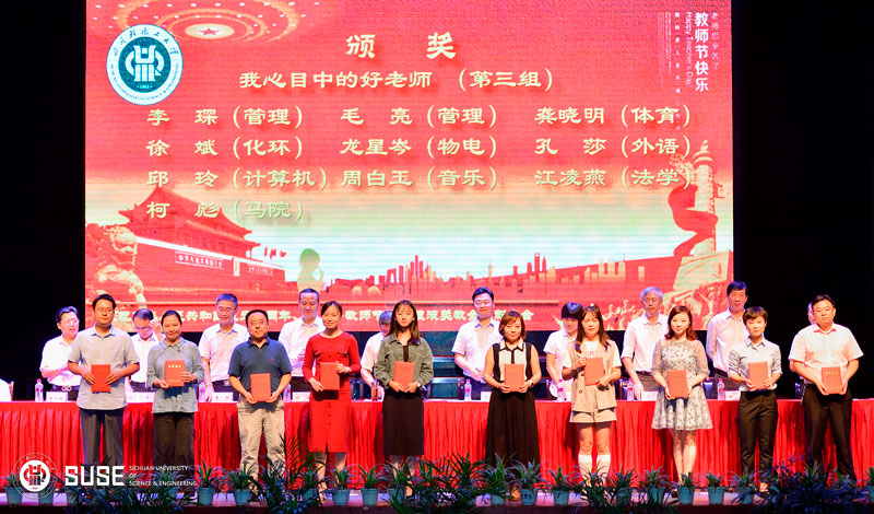 副校长颜杰教授宣读关于表彰四川省“金熊猫”先进集体、四川省教科文卫工会模范职工小家、四川省“三八红旗手”、 四川省教科文卫工会优秀工会积极分子、四川轻化工大学教学名师、 “颜德岳院士奖教金”奖励获得者、国家级项目负责人、四川省科技进步奖、四川省社会科学优秀成果奖获奖者、四川轻化工大学优秀研究生指导教师、四川轻化工大学“我心目中的好老师”、优秀教师、优秀实验教师、教学管理先进个人、四川轻化工大学优秀科技管理工作者、四川轻化工大学“不忘初心、立德树人”师德演讲比赛获奖者、四川轻化工大学第三届优秀辅导员素质能力大赛获奖者表彰文件。全体与会嘉宾及领导为获奖者颁奖。