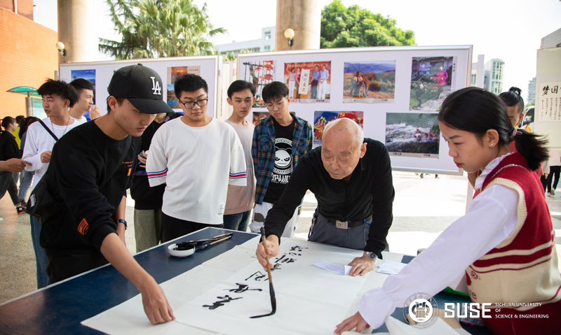 在展出现场,学校关工委、离退休管理处、校老年书画摄影协会还特邀本次获奖作品部分作者在展出现场开展义务书法创作,并免费赠送给亲临现场观展的师生员工。