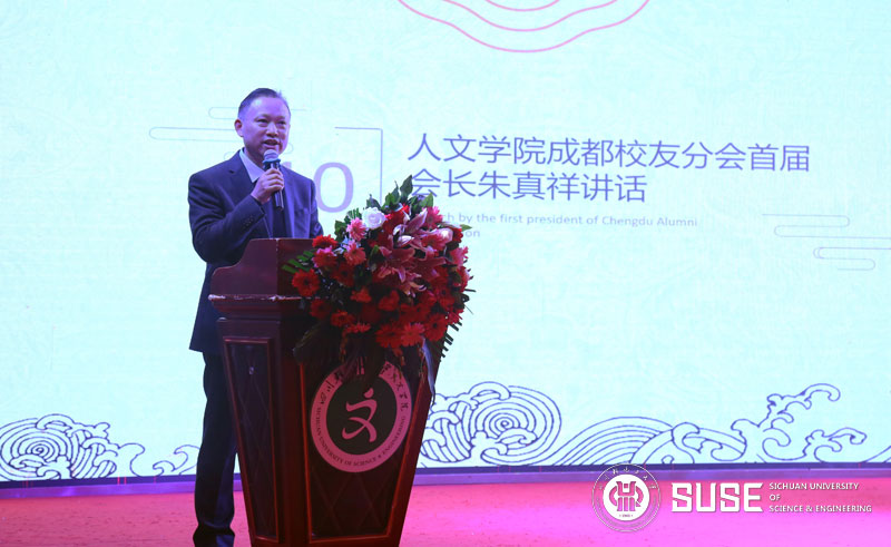 人文学院成都校友分会首任会长朱真祥在发言中表示,新一届理事会将严格遵守校友会章程,并有决心、有信心团结带领新一届理事会和广大校友一同建设好成都校友分会,一定不辜负母校和广大校友的殷切希望。