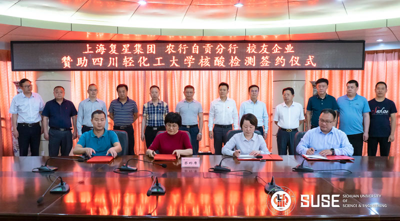 6月2日下午,上海复星集团、农行自贡分行、校友企业联合赞助我校学生全面开展系统核酸检测签约仪式在我校自贡汇东校区第四会议室举行。三家企业共赞助近300万元,为已返校的16000余名学生提供免费核酸检测。上海复星集团四川副首席代表罗超、中国农业银行自贡分行行长秦林、迪安股份成都医学检验所有限公司总经理沈浩宇,我校党政领导王洪辉、庹先国、龚敏、高小林出席仪式。