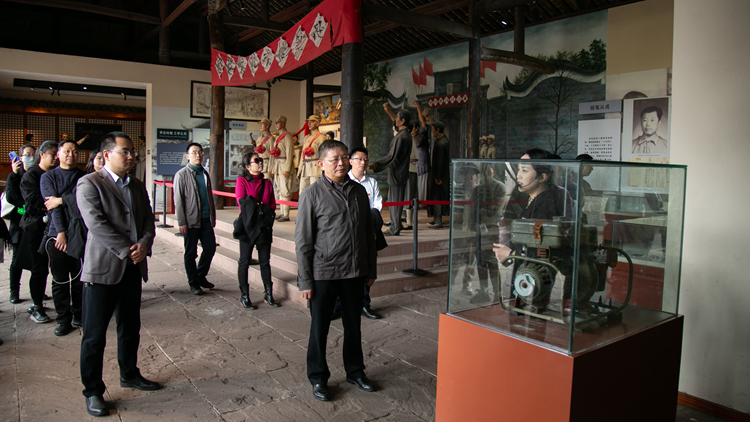 下午,同志们先后参观了李庄文化抗战博物馆和同济大学旧址。经过参观,同志们对抗战时期李庄人民的牺牲奉献精神深深感动,尤其是时任李庄镇长的罗南陔向国立同济大学发去“同大迁川,李庄欢迎,一切需要,地方供给”的十六字电报,让李庄成为了同济的“第二故乡”,李庄人民腾空庙宇、让出婚房、敞开祠堂,以开阔的胸怀和宽广的包容,接纳并保障了同济大学师生的工作和生活,也让随后陆续迁来的中国营造学社、国立中央研究院、中央博物院等教育科研机构,薪火留存、弦歌不辍,让李庄成为与重庆、成都、昆明并称为中国抗战大后方的四大文化中心。