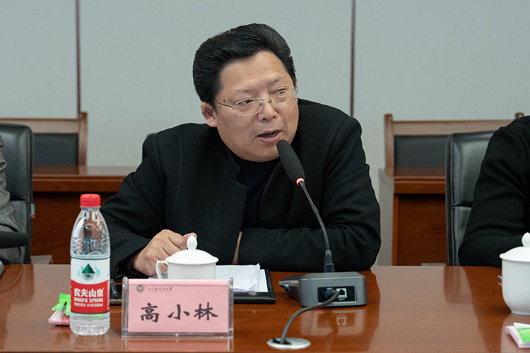 高小林介绍近年来我校在人才培养、科学研究、社会服务等方面取得的主要成绩和中国彩灯学院建设进展。他介绍,学校始终坚持“研学结合,产教融合,特色发展”战略,不断探索多科协同、交叉融合的产业学院建设模式。中国彩灯学院建设紧紧依托彩灯产业发展,将教学科研优势与行业发展优势充分整合,通过持续培养彩灯专业人才、引领制定彩灯行业标准等服务自贡彩灯文化产品出口,不断擦亮“彩灯”这张名片。他表示,下一步学校将立足非遗学院建设,积极对接文旅部恭王府博物馆中华传统技艺研究与保护中心等机构,以彩灯人才培养为基础,探索非遗传承、传播创新机制,努力建设享誉全国的现代产业学院。