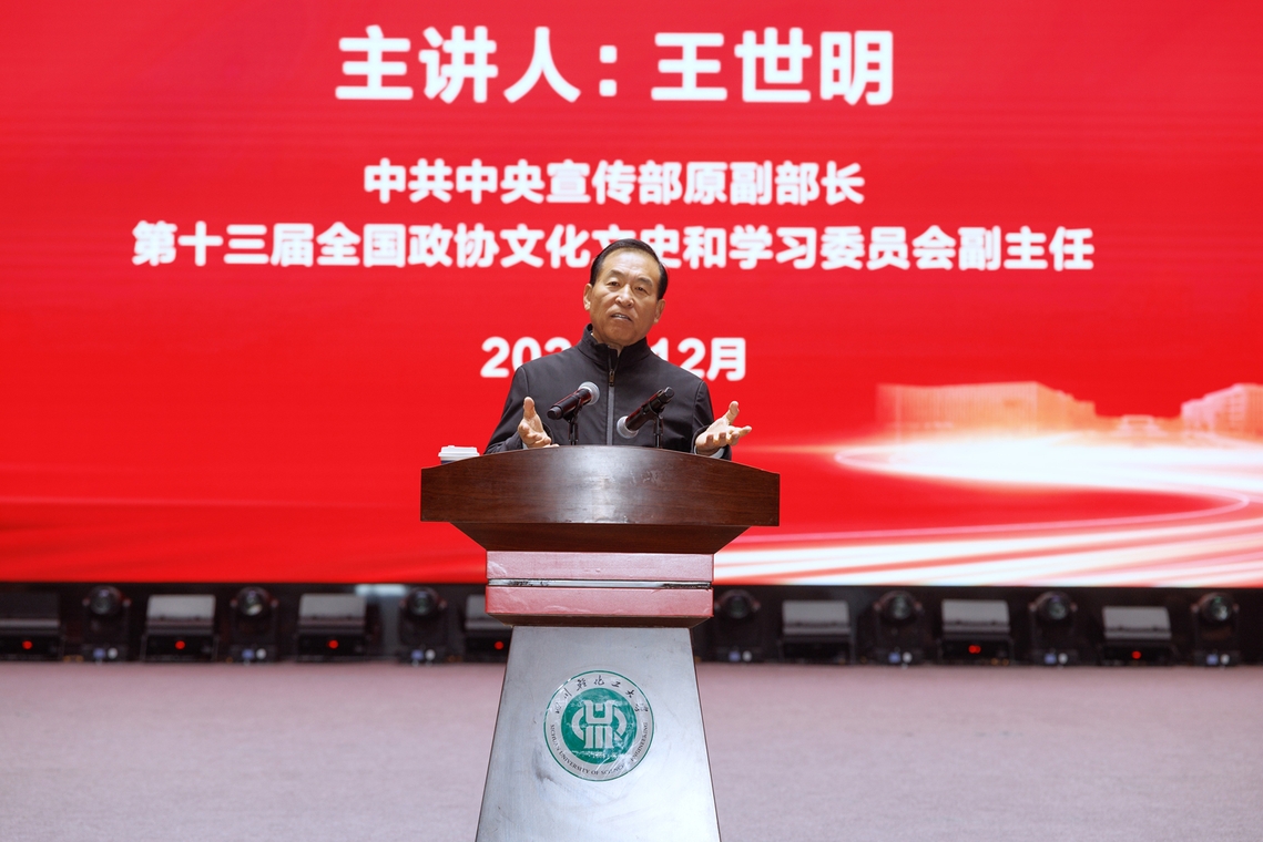 “冬温光景如春妍”,12月16日,我校迎来了一场文化与智慧的交融盛宴。中共中央宣传部原副部长、第十三届全国政协文化文史和学习委员会副主任王世明教授,携其深厚学识与独到见解,莅临我校李白河校区,以《关于文化自信的学习思考》为题,为师生们带来了一场启迪心灵、激发思考的专题讲座。讲座在盐都大剧院举行,现场气氛热烈、座无虚席,师生们怀揣着对文化的无限敬仰与深切探索之心,共同见证了这场思想盛宴的璀璨绽放。