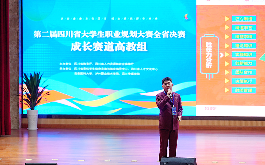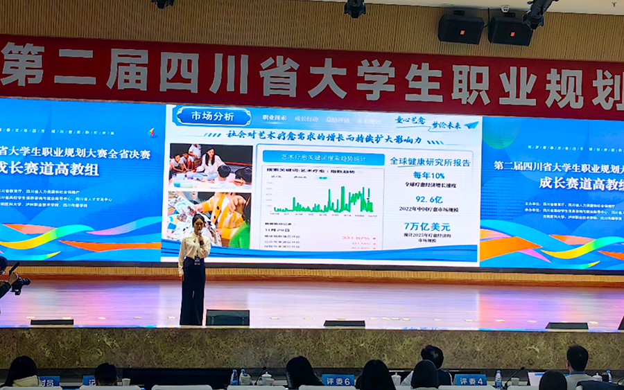 12月25—27日,由四川省教育厅、人力资源和社会保障厅联合主办,四川省高校学生信息咨询与就业指导中心、人才交流中心及西南医科大学共同承办的四川省第二届大学生职业规划大赛全省决赛(高教组)在西南医科大学举行。我校美术学院杨海帅获得成长赛道金奖,实现金奖零的突破。此外,教育与心理科学学院万议鸿、人文学院龚益仟分别获成长赛道和就业赛道本科生组铜奖。