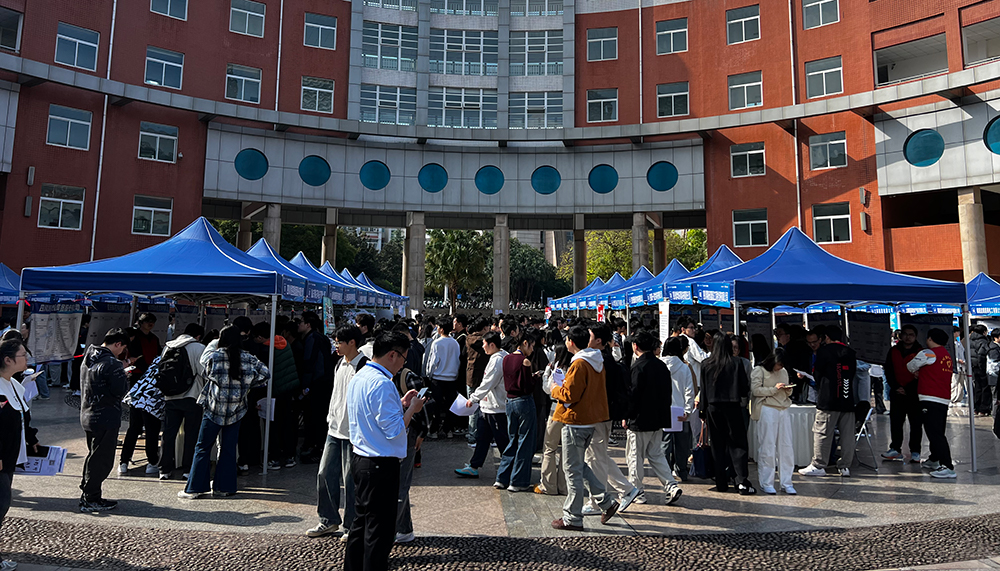 4月3日,我校2026届毕业生“春纳贤才,职展宏图”专场招聘会在汇东校区喷泉广场举行。本次招聘会由招生就业处主办,消防与安全工程学院等五个学院联合承办。