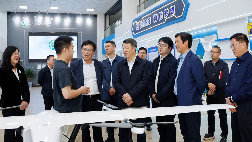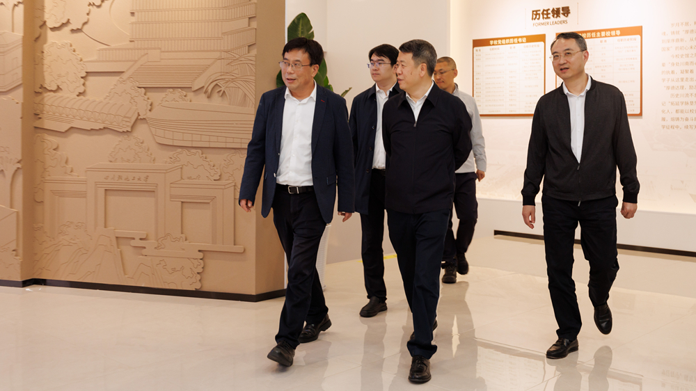 4月8日下午,四川省委教育工委书记,教育厅党组书记、厅长陈冠松一行在自贡市委副书记、市长石钢,自贡市副市长李文波的陪同下莅临我校,就人才培养、科技创新、成果转化、学校发展建设等工作开展实地调研。学校党委书记张力,党委副书记、校长曾英,党委副书记陈范华,党委常委、副校长罗惠波、胡光忠及相关职能部门负责人陪同调研。