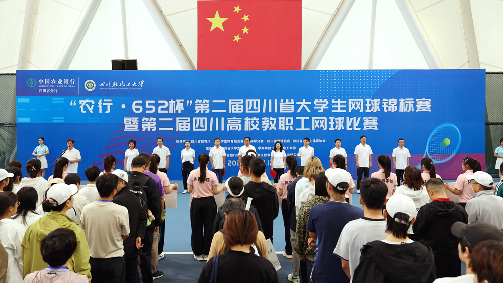 4月11日上午,“农行·652杯”第二届四川省大学生网球锦标赛暨第二届四川高校教职工网球比赛在我校李白河校区网球中心开赛。来自全省39所高校的492名师生齐聚自贡,以球会友。赛事于4月10日至12日举行,由四川省大学生网球协会主办,我校承办。四川省政协原副主席罗布江村、省网球协会副主席刘欣欣、我校校长曾英等出席开幕式。开幕式由我校党委常委、副校长罗惠波主持。