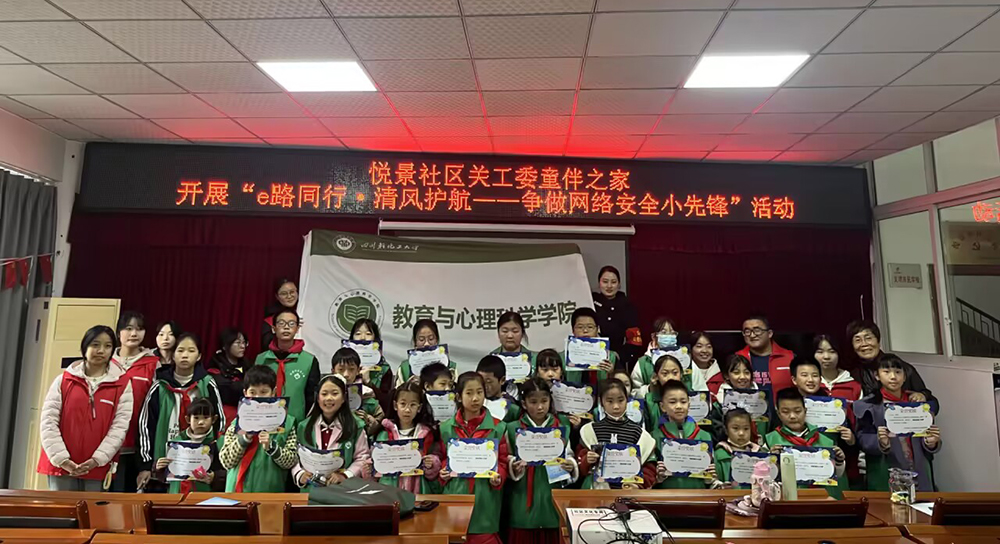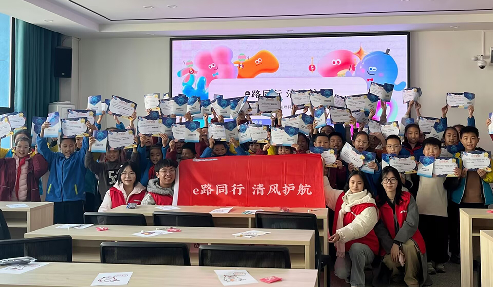 教育与心理科学学院“e”心净网志愿服务队聚焦网络文明与青少年心理健康,依托心理学、教育学专业优势,通过互动讲座、心理团辅、情景剧等形式帮助青少年识别网络风险,并自主开发“清风e站”线上咨询小程序。团队累计开展活动20余场,服务青少年及家长超800人次。