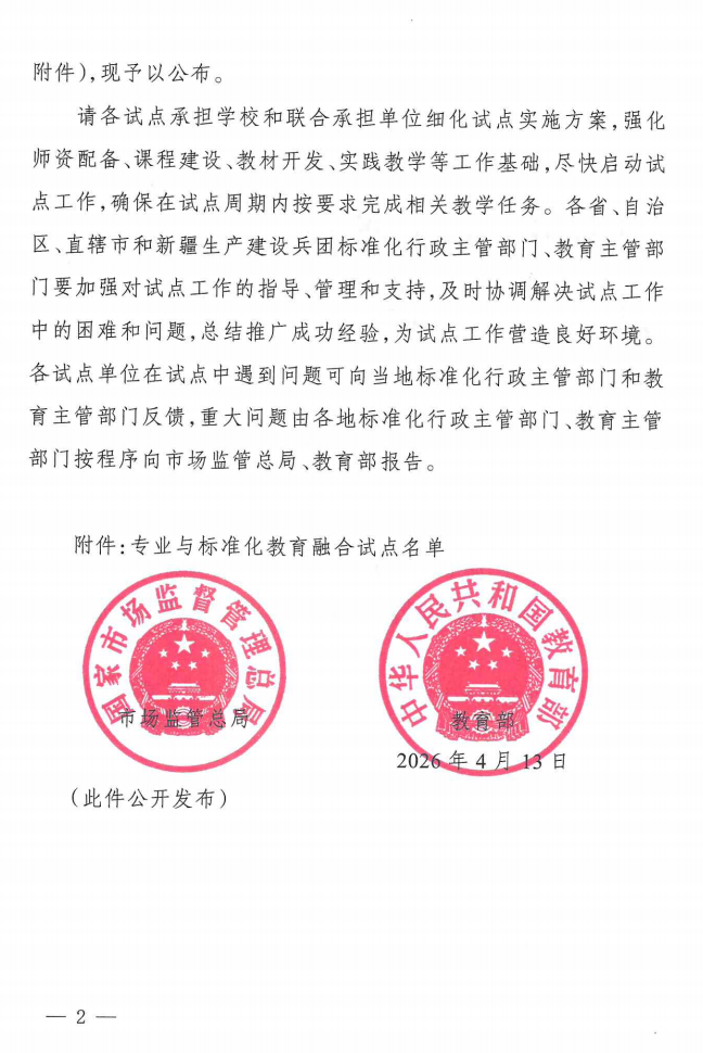 近日,从国家市场监督管理总局、教育部传来喜讯:为贯彻落实《国家标准化发展纲要》及《教育强国建设规划纲要(2024—2035年)》等相关工作部署,完善标准化人才教育培养机制,经单位申请、省级主管部门评审推荐及全国评审,我校成功入选全国首批“专业与标准化教育融合试点单位”。试点专业为机械工程学院过程装备与控制工程专业。这是我校近年来在人才培养改革领域取得的又一项国家级试点成果。