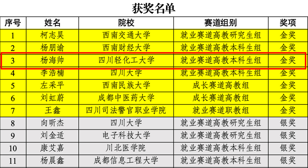 本次大赛以“筑梦青春志在四方,规划启航职引未来”为主题,吸引全国2000多万名大学生参与,798名学子入围总决赛,共决出金奖160名。四川高校斩获7金,金奖数量稳居全国前列。