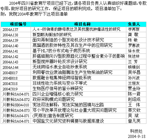 四川省教育厅下达我院2004年科研项目清单