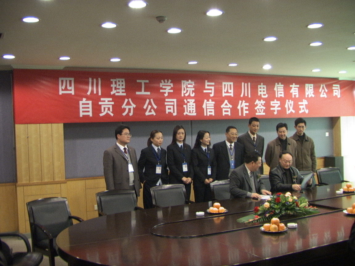 经过一个多月多轮次的磋商和协调,在学院领导的亲自指挥和直接指导下,四川理工学院与电信、网通校园网络合作协议终于于2005年1月3日顺利签约,学院网络主管领导—党委副书记唐健禾代表学院出席签字仪式。