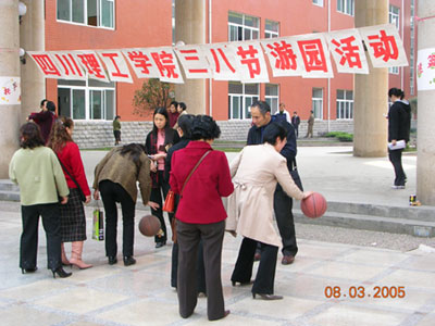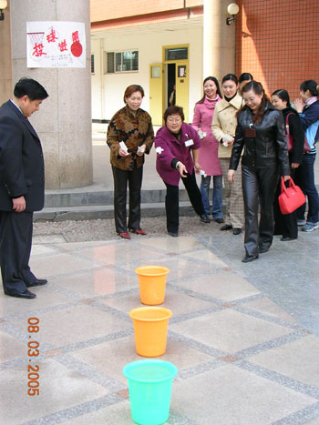 三月八日下午,春风吹拂,阳光明媚,院工会在汇南中心广场隆重举行了“创建和谐校园,做健康女教职工”为主题的“三八”节游园活动。游园活动共设知识问答、投飞标、投毽进筐、托乒乓球、踢毽子、跳绳、运篮球等7个项目。党委书记游建军、院长曾黄麟和其他院党政领导也兴致勃勃地与女教职工一起活动。全院女教职工踊跃参加游园活动,工作人员认真负责。游园现场人声鼎沸、高潮叠起、欢声笑语不绝于耳。