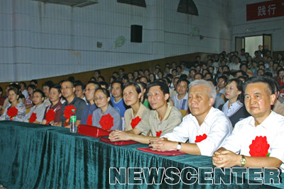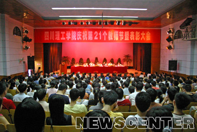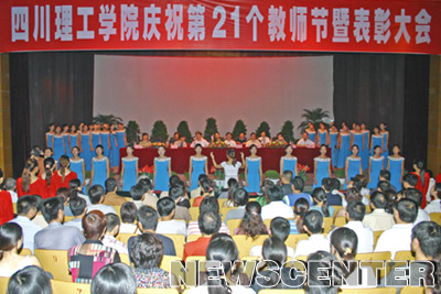 教师节前夕(9月8日),学院在营盘校区音乐厅隆重召开庆祝教师节暨表彰大会。大会表彰了2004年省政府和学院优秀教学成果奖获得者、2004至2005学年学院教学十佳和优秀教师,并为从事教育教学工作满30年的教职工颁发了荣誉证书。自贡市委书记、市人大常委会主任唐坚,市委副书记、市长王海林,市委副书记高先敏、副市长石岷嘉及学院党政领导游建军、曾黄麟、唐健禾、李开世、邓起方、钱维新、龚敏、谢峰出席了会议并为受表彰的教师颁发了证书和奖金。大会由党委副书记唐健禾主持。