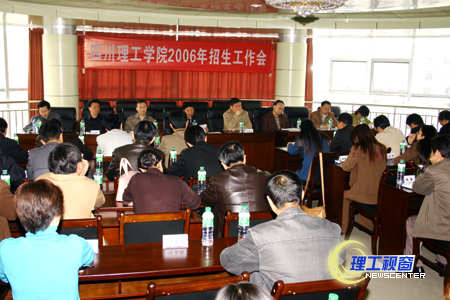 会上,院长曾黄麟就2005年我院招生工作取得的丰硕成果给予了肯定。党委副书记唐健禾部署了我院2006年招生工作计划安排:一是适应大局,作好调整;二是加大宣传,突出重点;三是严格遵守我院的招生纪律,确保招生公开、公平、公正的阳光工程顺利推进。 招办主任曾新就2006年招生工作新情况作了专项说明。