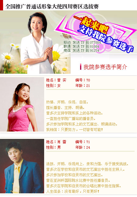 四川赛区选拔赛将于5月22日—25日举行,希望大家共同关注并支持两位同学,为他们踊跃投票。