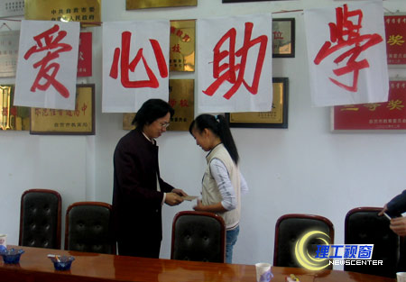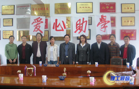 11月2日上午,民盟四川理工学院二支部的桂世权、熊卫、李志、钟加耘四位老师代表支部全体成员的一片爱心来到自贡市第六中学,支部主委桂世权老师将600元捐款亲自送到该校高二贫困生潘丽手中,以解决她本学期最后三个月的生活费用。自贡六中党支部书记陈国亮、校长郑小唐参加了捐助活动。
