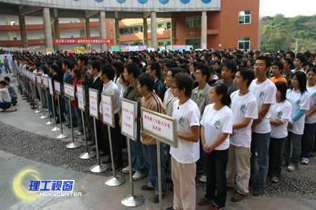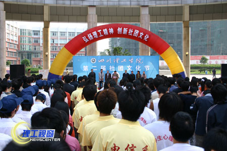 11月6日下午的喷泉广场热闹非凡,第二届社团节开幕式正隆重举行。31个社团的成员代表排着整齐的队伍一字展开,彩虹门在阳光的照耀下分外喜庆,“宏扬理工精神 创新社团文化”八个大字也分外引人注目。团市委副书记曹友良、万春霞到会祝贺,党委常委曾黄麟、唐健禾、李开世、邓起方、钱维新、龚敏、杨荣建出席了开幕式。开幕式由学生工作部(处)钱晓处长主持。