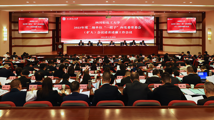 3月28日,学校在汇东校区学术报告厅召开2023年度二级单位“一把手”向党委常委会(扩大)会议述责述廉工作会。