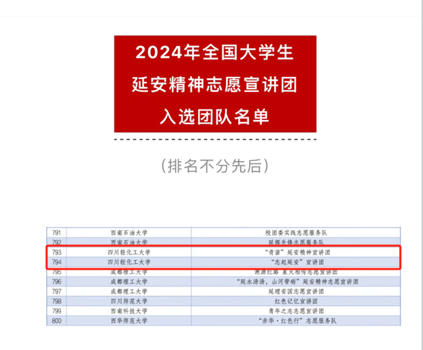 近日,大学生志愿宣讲团队入选名单已公布,我校四支队伍从全国八百多所高校的千余支队伍中脱颖而出。其中,土木工程学院“军心”志愿服务团队入选2024年全国大学生“两弹一星”精神志愿宣讲团;教育与心理科学学院“小太阳”志愿队入选入选2024年全国大学生井冈山精神志愿宣讲团;教育与心理科学学院“志起延安”宣讲团和自动化与信息工程学院“青苗”延安精神宣讲团两支团队入选2024年全国大学生延安精神志愿宣讲团。