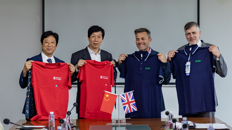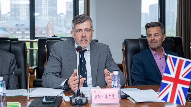 颜杰代表学校致欢迎辞。他表示,我校与切斯特来往已久、关系密切,通过多次互访加深了了解、建立了深厚的友谊,并确定建立长期友好合作关系,就开展教师培训和学生交流项目签署了合作协议。此次来访,英方不仅带回了完整的合作协议,也带来了合作章程,诚意满满。颜杰向英方介绍了目前师生项目的推进情况、学校所在地之一宜宾市工业“5+1”产业集群相关情况和学校产教融合发展情况。