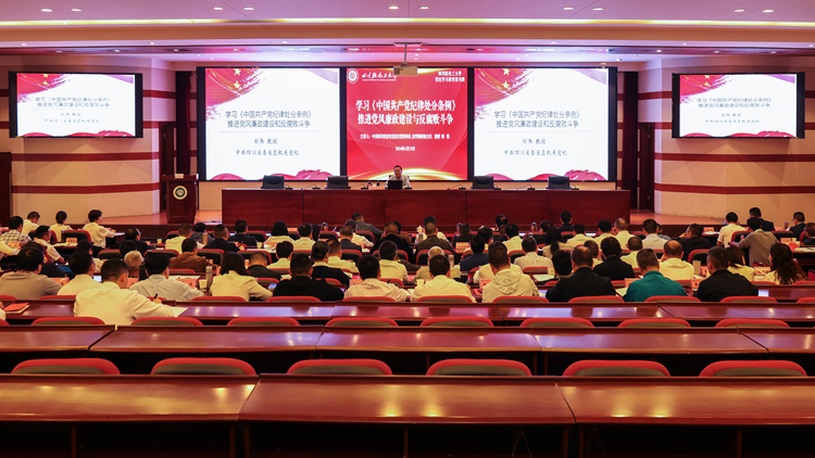 读书班充分发挥“关键少数”的示范引领作用,全校处级以上党员干部坐下来、静下心集中学习,聆听专家讲座,切实把思想和行动统一到党中央决策部署上。学习期间,中共四川省委党校党建教研部副主任、法学博士郭袆以《加强党的政治建设 严守党的政治纪律和政治规矩》为题,从“为何把政治建设摆在首位、严守哪些政治纪律和政治规矩、如何做个政治上的明白人”三个方面结合案例作专题辅导;省纪委监委驻校纪检监察组办公室副主任、学校纪委办公室副主任钟俊铧对新修订的《条例》进行全面解读;四川省直机关党校校委委员、科社•法学教研部主任刘伟教授从深刻认识《条例》修订的重大意义、准确把握《条例》修订的主旨要义、抓好《条例》的贯彻落实三个方面作题为《学习<条例>,推进党风廉政建设与反腐败斗争》的专题辅导;学校党委副书记、组织部部长陈一君教授结合《中共四川轻化工大学委员会关于进一步完善干部选育管用体系的实施意见》等文件精神,结合学校干部队伍建设实际,作题为《坚持造就忠诚干净担当的高素质干部队伍》专题报告;学习班还学习了中共中央党校(国家行政学院)教授、博士生导师刘炳香所作《习近平总书记关于全面从严治党的重要论述》辅导报告视频。学习期间,读书班全体成员课前学习了中国共产党第十九届中央纪律检查委员会第四次、第五次全体会议公报,第二十届中央纪律检查委员会第二次、第三次全体会议公报。