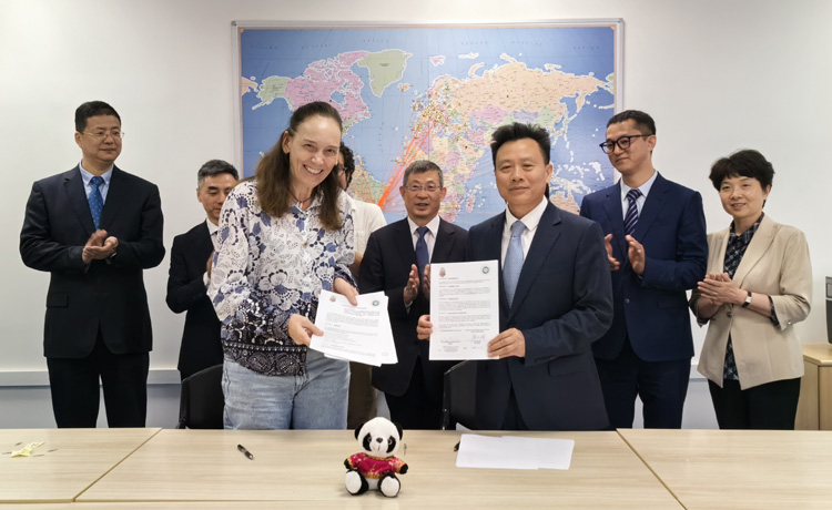 在圣保罗大学访问期间,庹先国与该校签订校际合作备忘录。他表示,巴西是我校在南美的重要教育合作伙伴,希望能在师生交流、教授访学、学术合作、科技创新、文化交流等方面与该校开展交流合作,共绘教育新愿景。