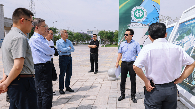 考察组一行实地考察了学校科学广场、盐都大剧院、音乐厅等。庹先国向考察组介绍了我校历史沿革、建设背景、规划布局、办学规模、学科建设、产教融合等方面的情况及学校近年来的发展成就。
