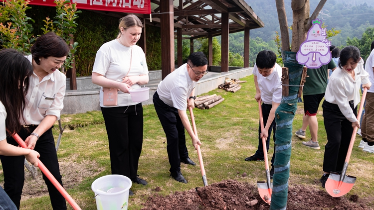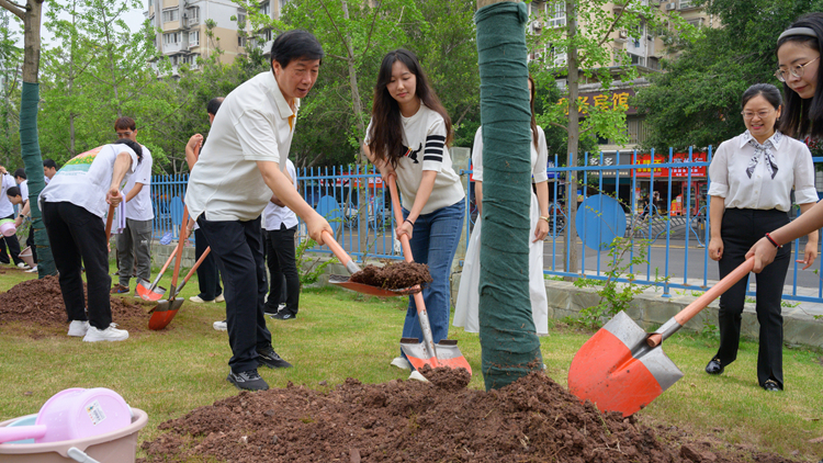 毕业生代表表示,种下的这棵小树苗仿佛就是他们青春的缩影,它静静地立在那里,见证了他们曾经的欢笑、泪水和成长。希望每一位毕业生都能怀揣着蓝花楹的情怀,把绿色的种子播撒在未来热土之上,不忘母校之恩,保持初心,勇往直前。