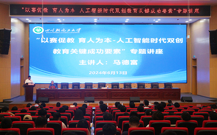 为更好指导我校师生新一轮创新创业项目建设,促进“双创”教育与高等教育的有机结合,贯彻“五育并举、育人为本、以赛促教”的教育教学理念,6月13日下午在宜宾校区达理楼报告厅,学校特邀教育部“双创”教指委智库专家、天使投资人、创业导师、产业创新发展顾问马德富教授作题为“以赛促教·育人为本—人工智能时代双创教育关键成功要素”专题报告。党委常委、副校长胡光忠主持报告会,各学院分管创新创业教育领导、创新创业项目指导教师和参赛学生参加。