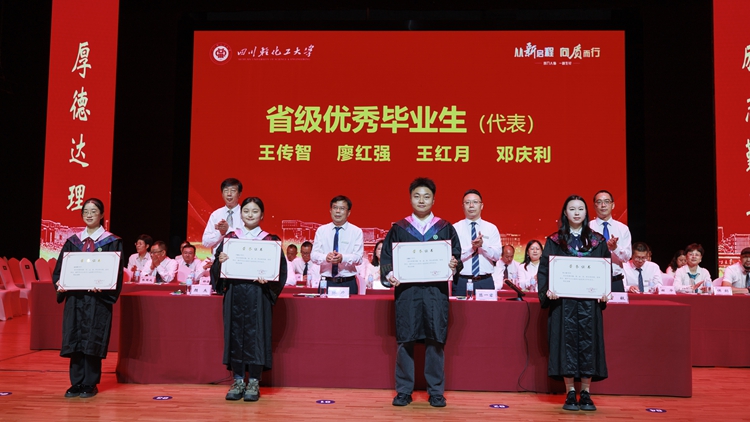 本专科毕业生代表、生物工程学院毕业生赵子涵站在毕业路口回望,记忆扑面而来,“毕业了,虽然将走不同的路、看不同的风景、遇不同的人、追不同的梦,但始终不变的是川轻化人的身份,始终不渝的是对追求人生理想的热爱。”人文学院毕业生李卓颖说,“即将带着川轻化赋予的知识和智慧,踏上新的征程,涌入人海在各自领域发光发热,我们会在创新、吃苦、拼搏中展现新时代青年向上向善、风华正茂的青春作为,用自己的汗水回馈母校和祖国。”