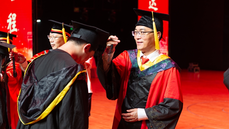 《毕业歌》一响,全都是青春。毕业典礼后,2024届毕业生学位授予仪式继续举行。毕业生们穿着整齐的学位服自信登台、闪闪发光,学位委员会的领导和导师们为每位圆满完成学业的毕业生逐一授位、扶正流苏并合影留念,祝贺他们如愿拥有川轻化牌《毕业证书》,为人生旅途浇灌出一朵鲜艳的花。