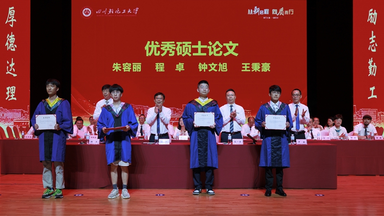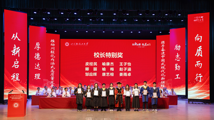 作为川轻化学子的高光时刻,校党委书记张力、校长庹先国为“校长特别奖”获得者颁奖,并与在场领导及嘉宾分别为优秀毕业生代表、“优秀硕士论文”获奖者颁奖。