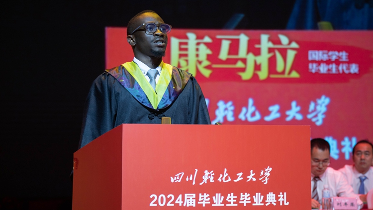 作为国际学生毕业生代表,来自几内亚的康马拉和来自乌兹别克斯坦的马丁带着梦想和期待,汇聚到川轻化这片热土求学。他们感谢在此度过人生中最宝贵的青春时光,不仅在学业上取得了进步,更重要的是深刻领略到了中国文化的博大精深和独特魅力。未来会带着在川轻化收获的一切,回到自己的国家和家乡,将所学运用到实践中去,贡献自身的力量,闪耀川轻化光芒。