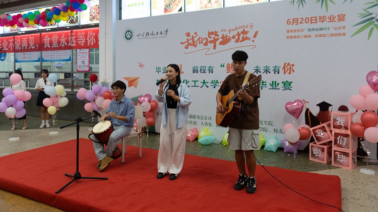 此次毕业祝福宴由学校后勤基建处、后勤服务总公司联合党委宣传部、学生工作部(处)、校团委、校友总会、校友工作办公室、音乐学院共同举行,旨在为2024届全体毕业生送上一份心意,以食堂美味给毕业生留下青春的印记,让即将远行的学子感受来自母校的温暖情谊,永远记住属于川轻化的独特味道。